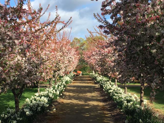 The total area of the gardens is about seven acres, which includes an extensive edible garden, a parterre garden, a silver birch forest, perennial border, casuarina forest, small display gardens and of course the wisteria archway.