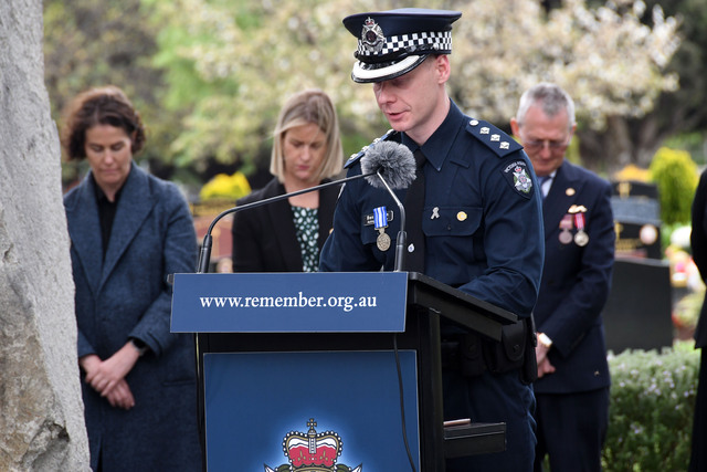 This year’s commemoration held particularly sombre significance following the murder of two Victoria Police officers in Porepunkah on 26 August 2025, a tragedy that continues to weigh heavily on police and the public alike.