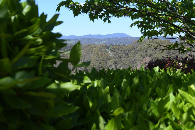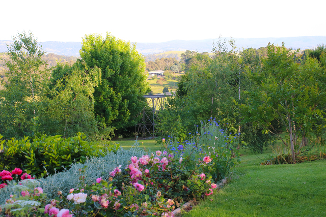 Sweeping views across Christmas Hills and Yarra Glen form a stunning backdrop to the garden.
