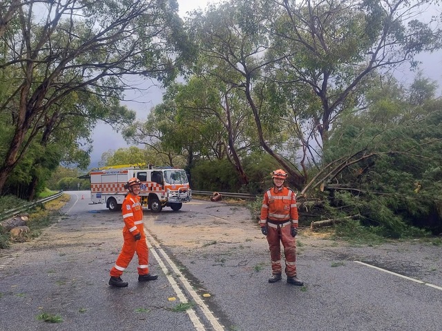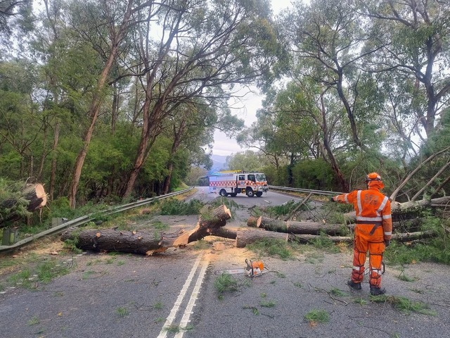 The Healesville SES prompts drivers to watch out for fallen trees, as the wet weather loosens root soil.