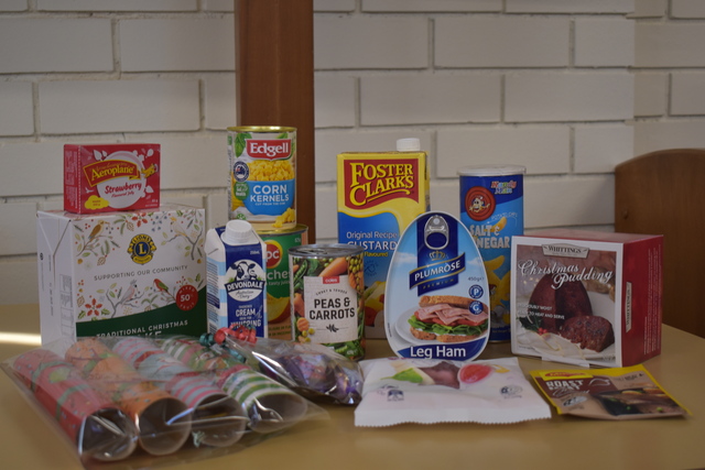 The hamper items have been donated by a range of churches and the local community, with the Healesville Lions Club donating the Christmas cakes.