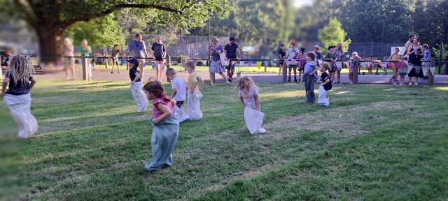 Myuna Animal Petting Ark, Claire and Sam duo, Welcome to Country and Smoking Ceremony, Novelty races for all – with podium and race badges for winners, Lawn games and outdoor toys from the Healesville Toy Library, and Line Dancing by Shine.
